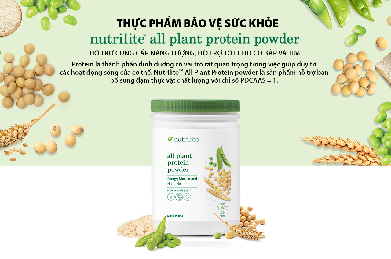 Đạm Thực Vật hữu cơ Nutrilite All Plant Protein Powder được phân lập – Hoàn chỉnh, chỉ lấy 20 axit amin thiết yếu, với chỉ số hấp thu tối đa PDCASS =1, giúp tái tạo tế bào, phòng chống ung thư và các bệnh mãn tính, phù hợp cho mọi đối tượng bệnh.