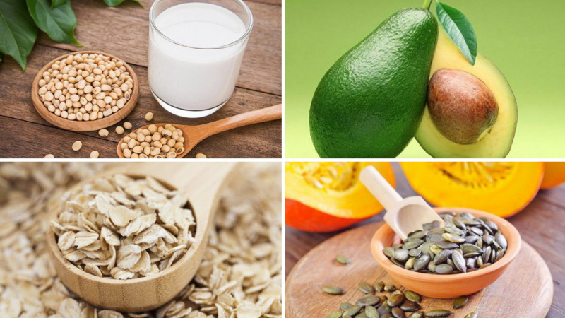 Sữa thực vật, quả bơ, yến mạch, hạt bí ngô và tảo xoắn là những thực phẩm giàu đạm thực vật