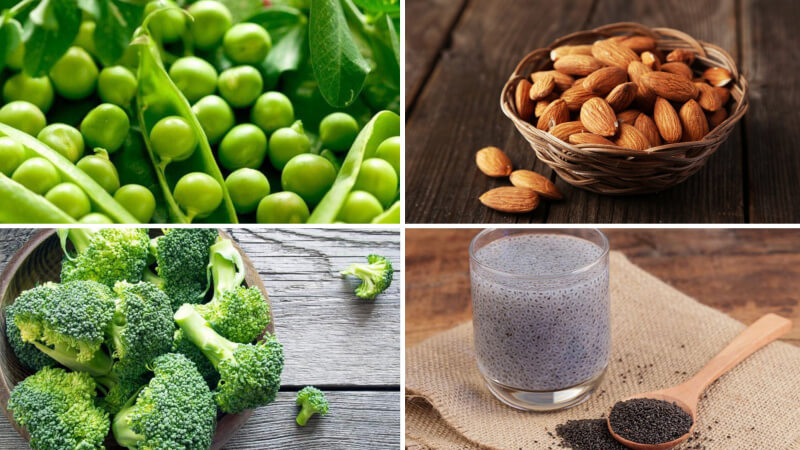 Đậu lăng, hạnh nhân, súp lơ xanh, hạt chia là những thực phẩm giàu đạm thực vật